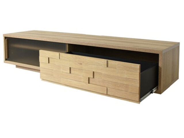 ランダムな凸凹柄の引出が特徴的なTVボード。個性を持ちつつナチュラルなデザインが様々な部屋にマッチします。ガラス戸はリバーシブルで使用できます。