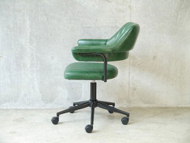 昔の映画に出てきたBARBAR SHOPに置かれていたような、 どこか懐かしい雰囲気を持ったチェア。 風合いのあるカラーPU生地が落ち着いた印象にしています。