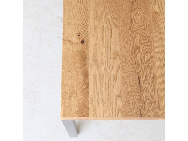 無垢材ならではの質感とナラ材のナチュラルで温もりのある風合いが際立つようにバランスを重視したシンプルなデザインに仕上げ、スチール脚を組み合わせました。どんな空間にも映え、優しくも洗練されたシリーズです。テイストを選ばないので、遊び心あるチェアとの組み合わせも楽しむことができます。