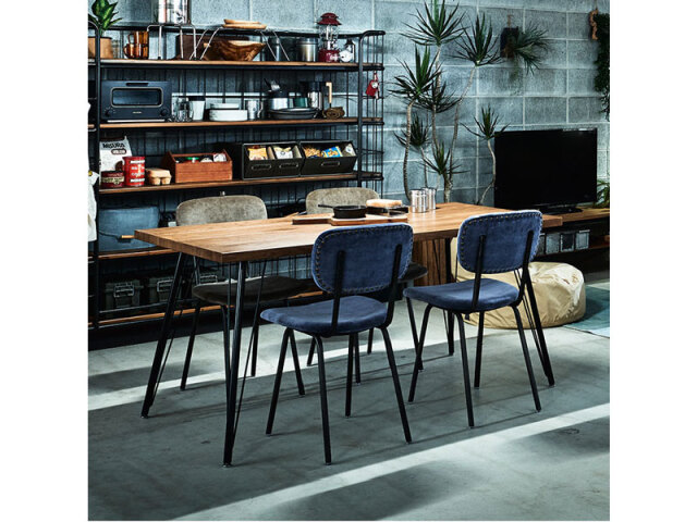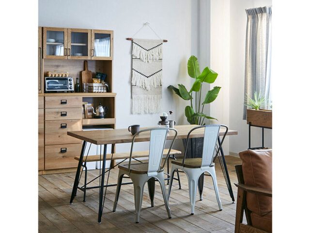風合いの異なる素材を組み合わせたシンプルなテーブルです。オイルで自然な 風合いに仕上げたオーク材の天板と、縁に無垢材を巻いた趣きのある古材の 天板の2種類をシリーズで展開しています。