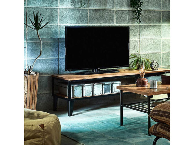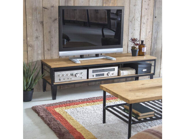 異なる質感の素材を組み合わせたシンプルなテレビボード。 ファブリックやグリーン、ブロカント等との相性も抜群です。 温かみのあるオイル仕上げを施しており、自然な木目、風合いを感じることができます。