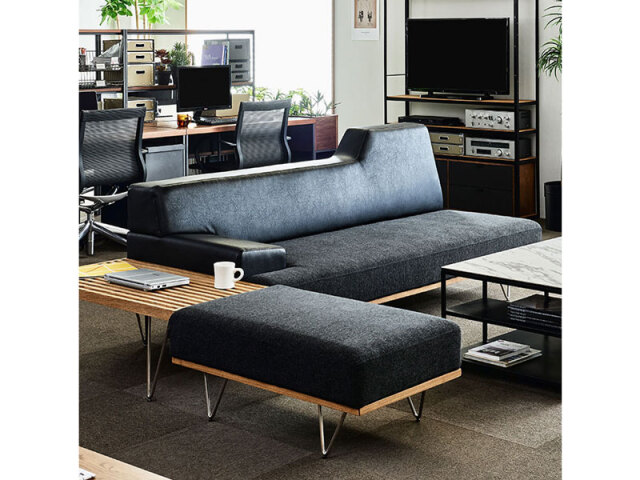 アシンメトリーなフォルムをミニマルにまとめた、スタイリッシュでモダンなイットシリーズ。脚部はミッドセンチュリーデザインを取り入れたデザイン。ソファ・スツール・コーヒーテーブルを組み合わせて、複数の空間演出ができます。「ユーロテック生地」は、紫外線や汗による変色、引っ掻きや表面剥離にも強い素材で、「IC生地」は、水分の染み込みや汚れに強い高機能素材です。撥水効果は薄れますが、ケアによって継続します。