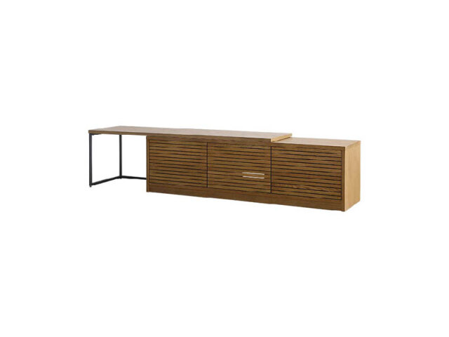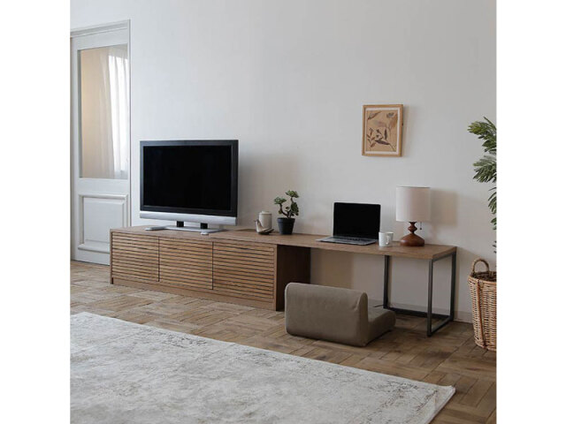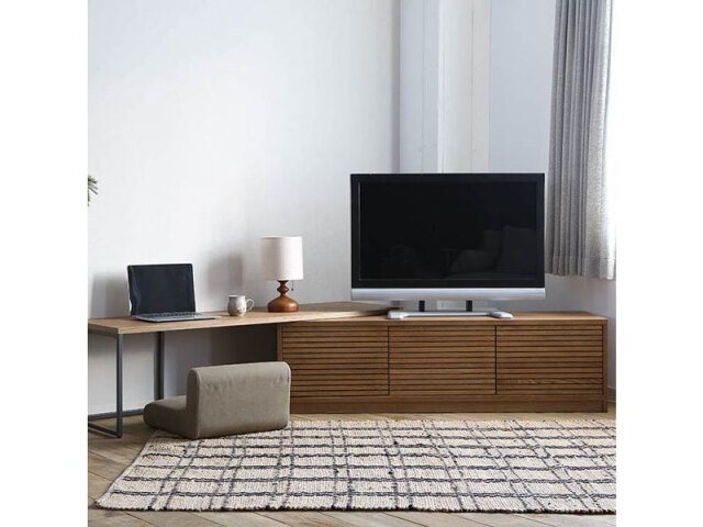 格子扉が特徴的なテレビボードです。扉付ですっきりとした印象を与えます。ス ライドテーブルを伸長させれば自由に幅を変えることが可能です。生活に合わ せて多様な使い方ができます。