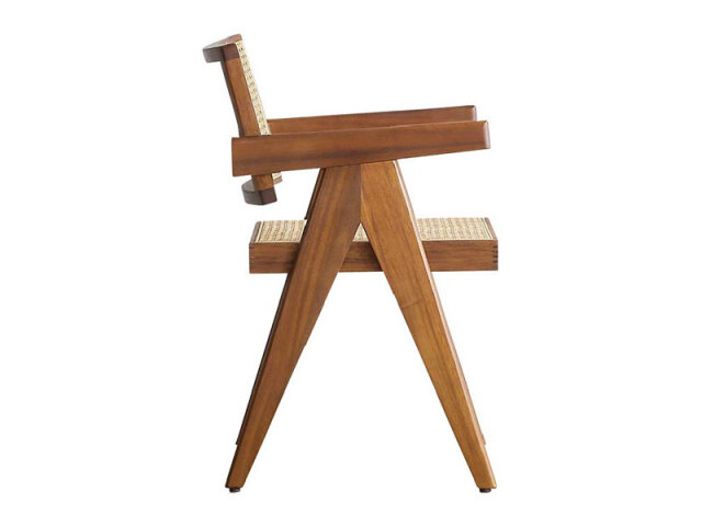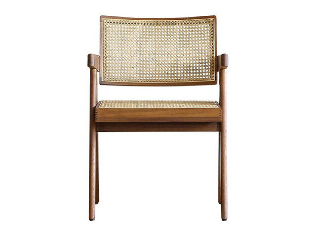 ラタン×チーク、異なる自然素材を組み合わせたチェアです。タイムレスなデザインとチークウッドならではの美しい木色がつくる洗練した雰囲気が特徴です。背と座には、かごめ編みで織られたラタンを使うことで抜け感のある柔らかな空間を演出します。