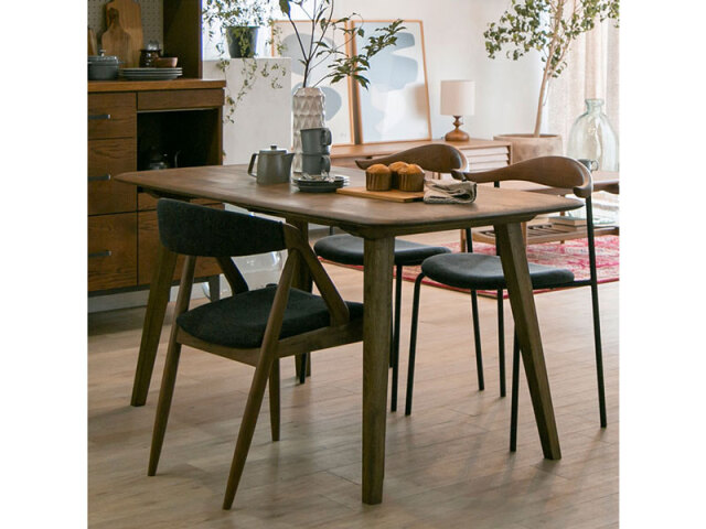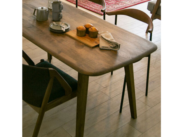 オイルで仕上げた温かみのあるナラ材を使用したシンプルなテーブルです。 天板の緩やかなカーブと面取りをこだわり、強弱の感じられる絶妙なバランスに仕上げました。