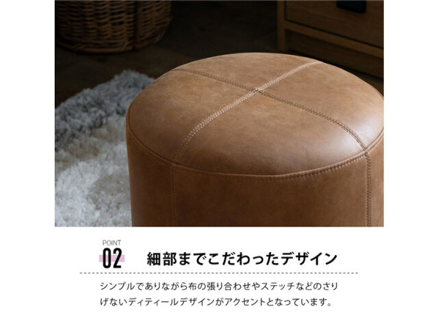 上質な厚革風の張地を使った、ブラウンとブラック2色展開のスツールです。ゆったり座れる座面広めの600サイズと、コンパクトな400サイズの2型をラインナップ。布の張り合わせとステッチがデザインアクセントとなった、シーンを選ばず使えるアイテムです。