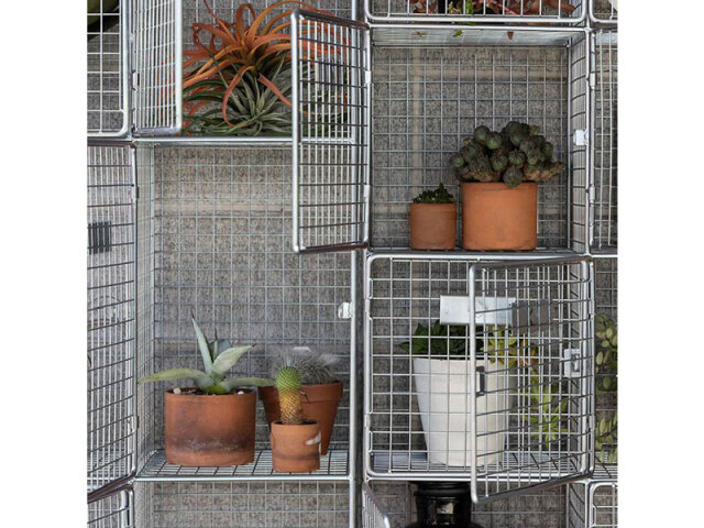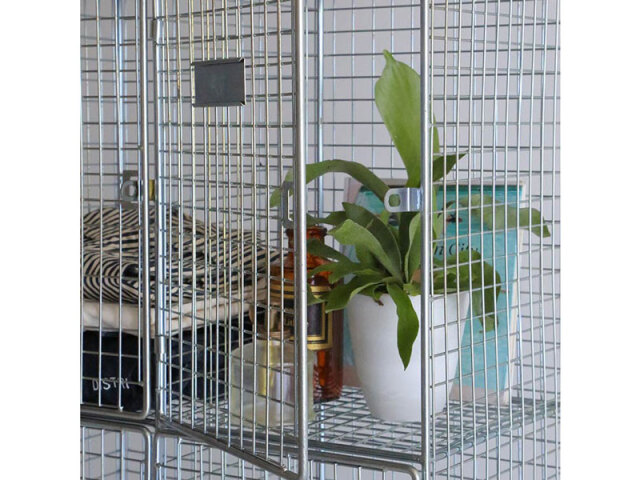 イギリスの学校や仕事現場などで使われているワイヤーメッシュのロッカーキャ ビネット。全方位スケルトン仕様で存在感のあるデザインです。靴、アウトドア 用品の収納、観葉植物のディスプレイなどアイディア次第で様々な用途で使 用可能。店舗什器としてもおすすめです。