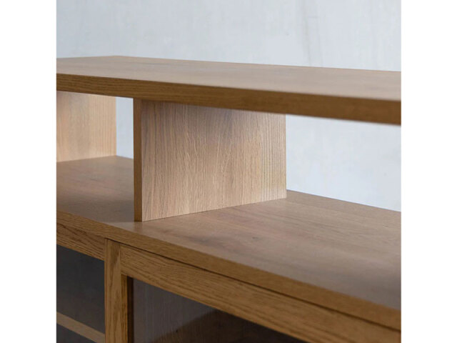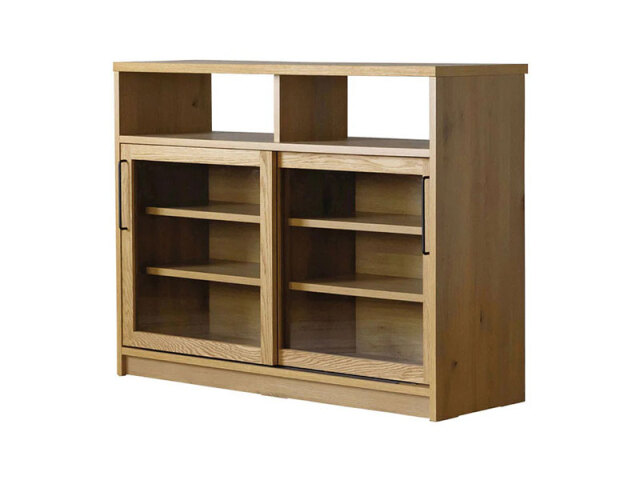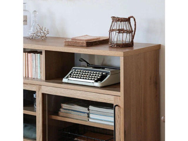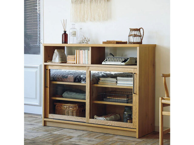 スタイリッシュさと温かみを感じられるシンプルなデザイン。上部には直ぐに取り出したい物やお気に入りの雑貨を飾るのがおすすめ。下収納にはホコリをさけたい物をしまい、ディスプレイと収納両方の用途で使えます。