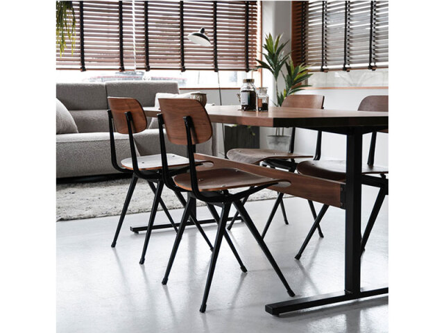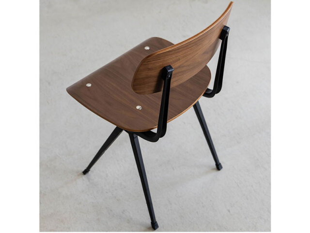デザイナーズのリプロチェアです。個性的な逆V字の脚はオランダのデザインを代表する「コンパス・レッグ」と呼ばれ、普遍的な美しさが特徴です。木の持つ温かさと洗練されたスチール脚の異素材の組み合わせをお楽しみいただけます。ナチュラルな風合いのオーク材と高級感のあるウォールナット材からお選びください。