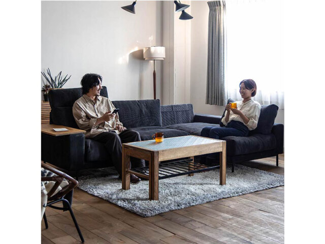 奥行きが広く、身体に馴染むようにくったりと沈み込む座り心地が特徴のソファ。人気のプルートソファのカウチタイプです。