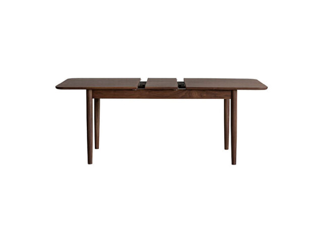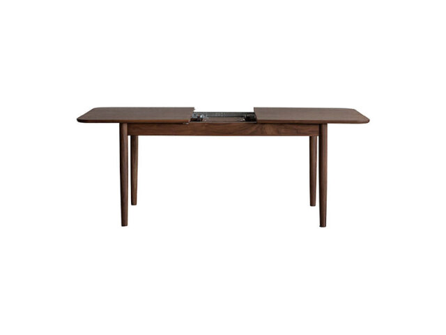 面取りした柔らかいナチュラルな雰囲気が特徴のダイニングテーブルです。テーブルの端を引いて、中央から天板を取り出し伸長することができます。来客がある際など用途に合わせて伸長させてください。