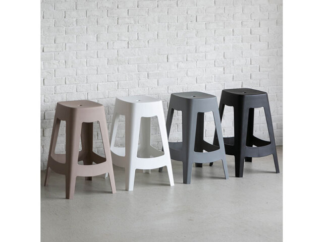 柔らかい印象の曲線的なフォルムで、スタイリッシュなデザインが特徴のスツール。優しいカラーリングは、ナチュラルからモダンまで幅広いスタイルに調和します。耐久性のあるPP樹脂素材のため、野外でもご使用いただけます。表面は汚れても軽くふくだけで、お手入れが簡単です。使わないときは、複数あっても場所を取らないスタッキング仕様です。