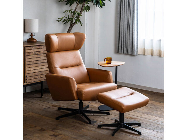 どんなテイストにもフィットするパーソナルチェア。 レバーを引けば背もたれがスムーズに傾く、リクライナー機能を搭載しています。 Hiタイプのヘッドレストは前方無段階の角度調節と4段階の高さ調節が可能です。 お好みの姿勢で読書や映画鑑賞などリラックスタイムをお楽しみください。