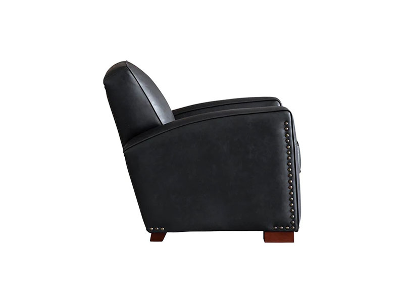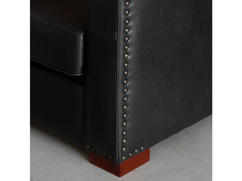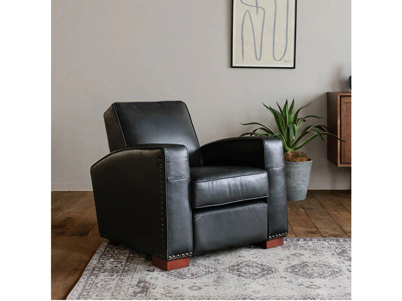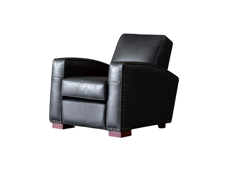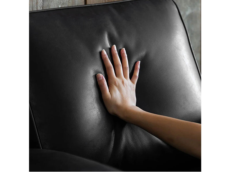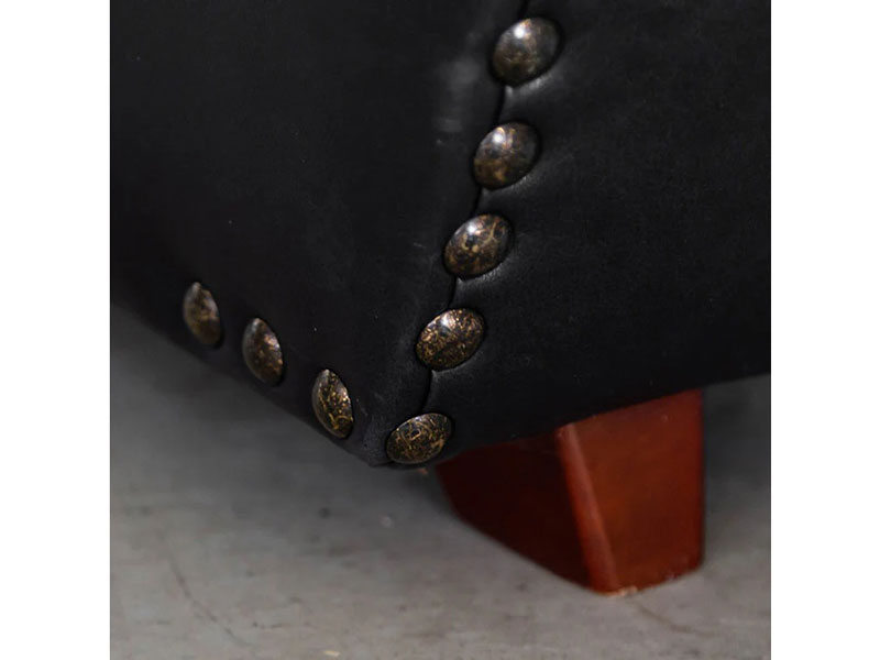 曲線的なアームと傾斜した背もたれが優雅な雰囲気を演出します。重厚感のあるボディを脚と鋲のアクセントが引き締めます。存在感のあるそのフォルムは、ヴィンテージや無骨なインダストリアルスタイル、モダンミックスなど様々なスタイルで存在感を放つ一人掛けソファです。