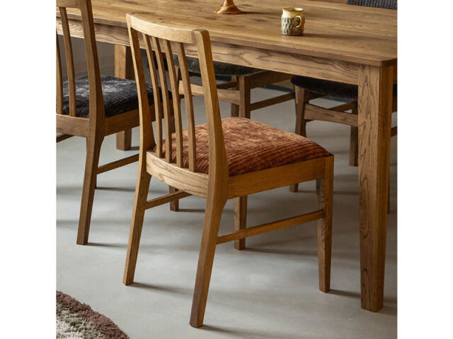 リンチェアは、「シンプルで凛としたカタチ」をコンセプトに名付けられた、クラッシュの初期から販売しているロングセラー商品です。昔ながらのハイバックチェアをモチーフにしつつも、背もたれを低く設計しローバックに仕上げることで圧迫感を抑えています。フレームには無垢材をふんだんに使い、木の温かみを感じるデザインに。優しい風合いは穏やかなダイニングシーンを演出します。