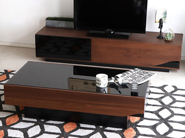 薄型テレビに対応したロータイプのボディに、天然木とガラスを組み合わせたワンポイントのあるデザインを採用。 引き出しの横には便利な収納スペースを設けています。