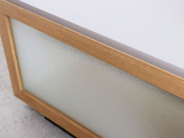 | 規格 | 天板:オレフィン化粧板 本体:オレフィン化粧板、プリント化粧板 前板:強化紙化粧板 ガラス:4mmガラス(凹凸有り) |