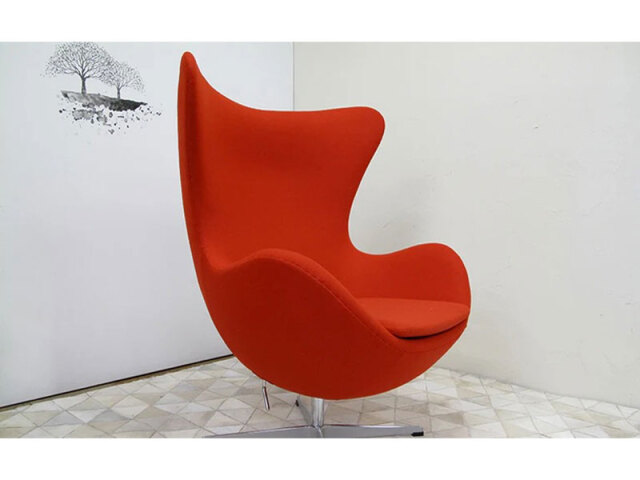 北欧デザインの象徴として生まれた、有機的で彫刻的なフォルム。 「卵」のように包み込まれるシルエットが、空間に静けさと安らぎをもたらす。 時代を超えて愛され続ける、機能美と上質さを備えた一脚。