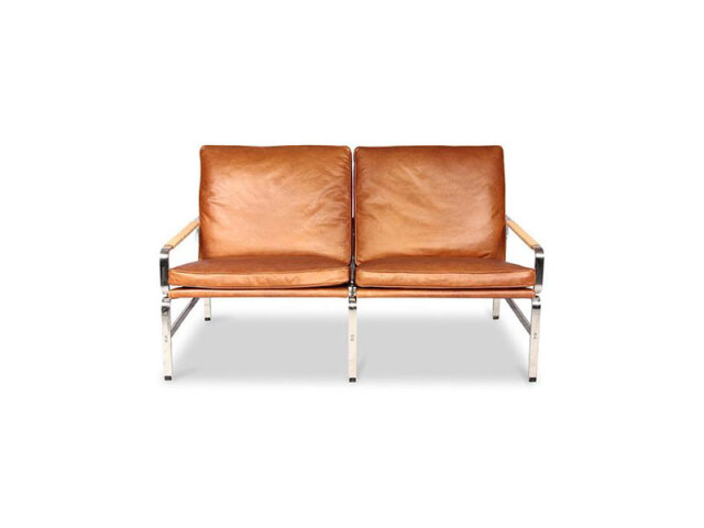 工業的な金属フレームがモダンなソファ。 デンマーク出身のデザイナーデュオ、プレーベン・ファブリシャスとヨルゲン・ カストホルムによって1965年にデザインされました。 本革で仕上げたシートは格調高く、ステンレスのフレームに絶妙なバランスで収まっています。 1人掛け、2人掛け、3人掛けのバリエーションがあり、広い空間や商業施設でも統一感のあるコーディネートが可能です。