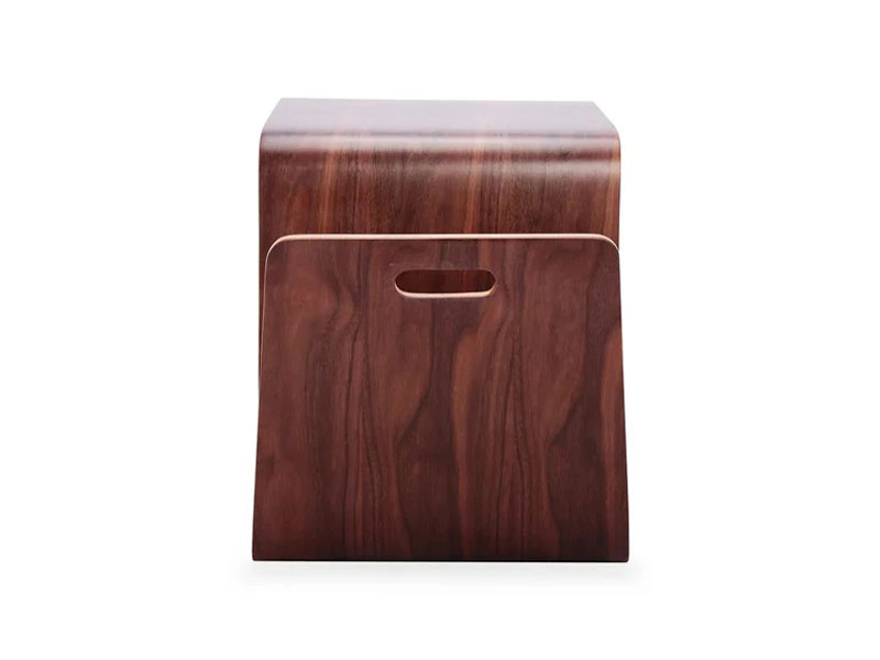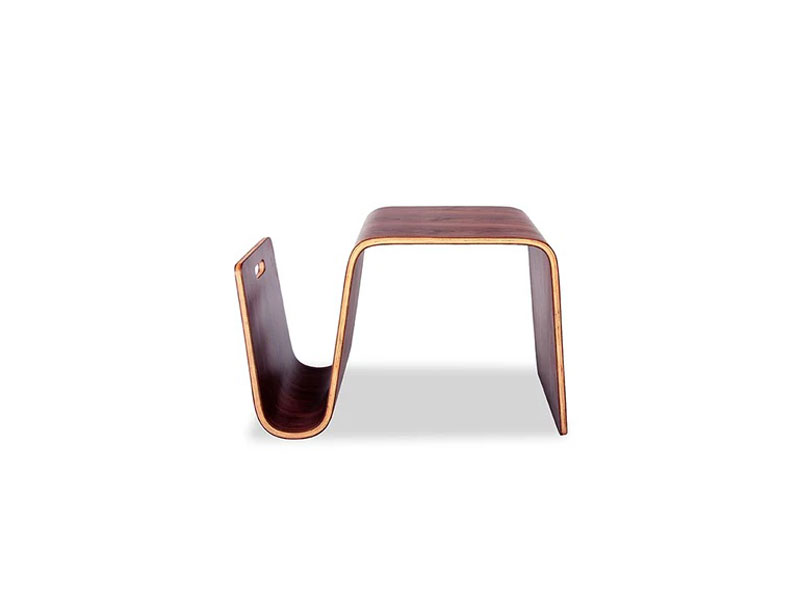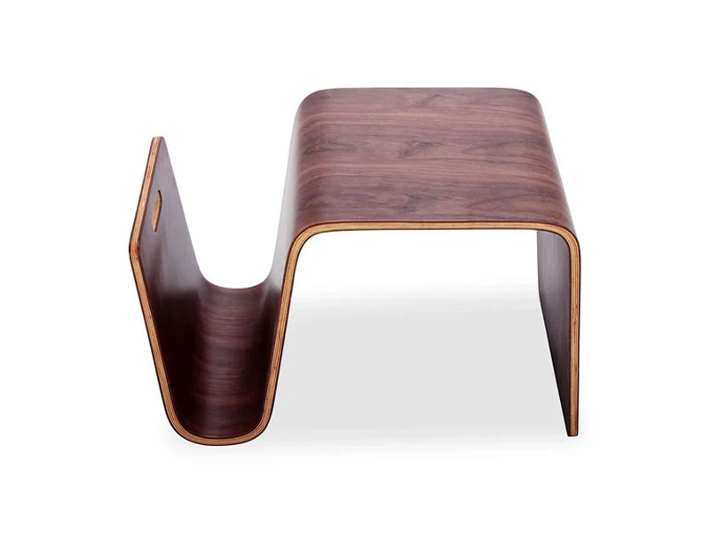 ユニークなシルエットのサイドテーブルとローテーブル。 身近で便利な製品の設計を得意とするエリック・ファイファーが2005年にデザインしたものです。 このテーブルの基本的な使い方は天板となる面にカップを置き、横のスタンドをマガジンラックにすること。 コンパクトサイズのサイドテーブルは、90度回転させて縦に置くことも可能です。 プライウッドの断面とウォルナットのコントラストが曲線美を際立たせています。