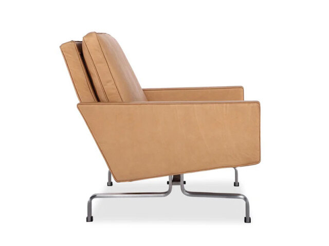 1958年にデザインされたポール・ケアホルムの代表作のPK31ソファ。 とりわけPKシリーズの中でも代表作に位置づけられる作品です。 彼の作品は世界中の美術館で収蔵されている事から分かるように美しい芸術作品の領域に達します。 素材・構成・形体・色彩とどの部分をとっても徹底して選択され、極限まで削られたストイックなディティールラインは そのものが存在する空間に洗礼されたシャープさと気高さを感じさせます。