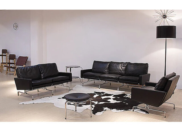 1958年にデザインされたポール・ケアホルムの代表作のPK31ソファ。 とりわけPKシリーズの中でも代表作に位置づけられる作品です。 彼の作品は世界中の美術館で収蔵されている事から分かるように美しい芸術作品の領域に達します。 素材・構成・形体・色彩とどの部分をとっても徹底して選択され、極限まで削られたストイックなディティールラインは そのものが存在する空間に洗礼されたシャープさと気高さを感じさせます。