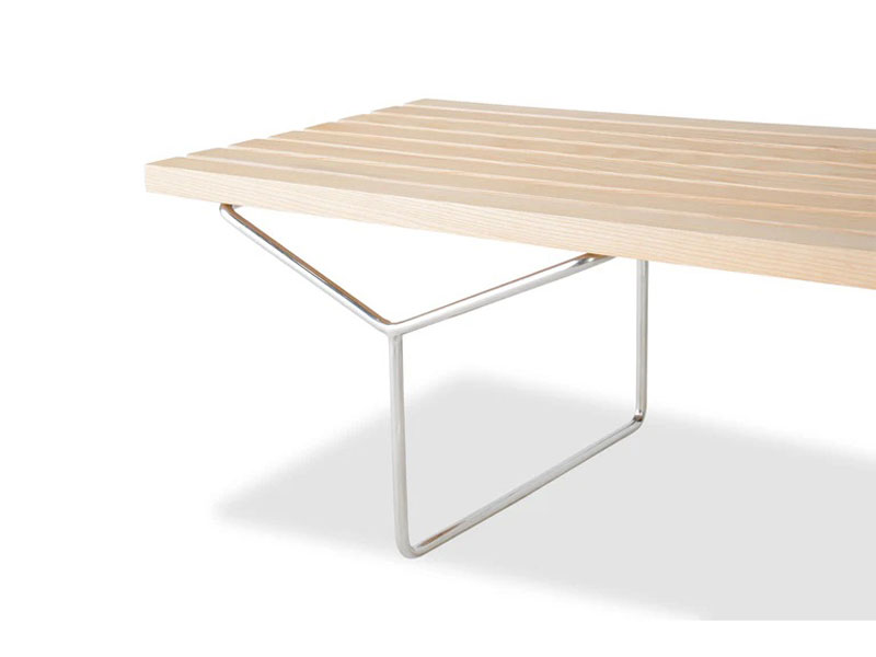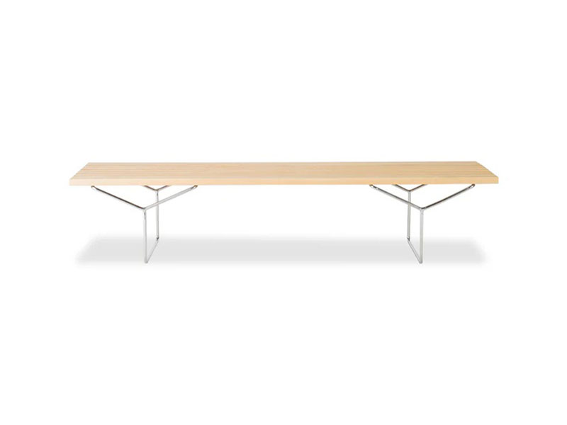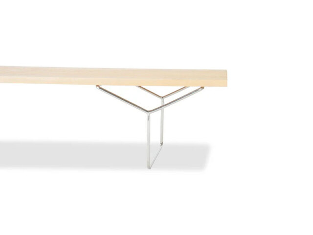 ハリー・ベルトイアが描いた構造美が、空間に静かな品格を宿す。 ベンチとして、時にローテーブルとして、自在に使える洗練された存在。 ミッドセンチュリーの理性と詩情を今に伝えるデザインピース。