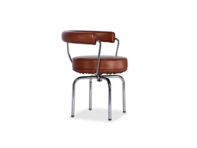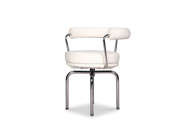 フランス人建築家によってデザインされた、家具の歴史の代名詞LCシリーズ。 4本の金属パイプの上に配されたボリュームのある座面は、回転する機能も与えられているので椅子を前後にひく事無く立ち居可能です。