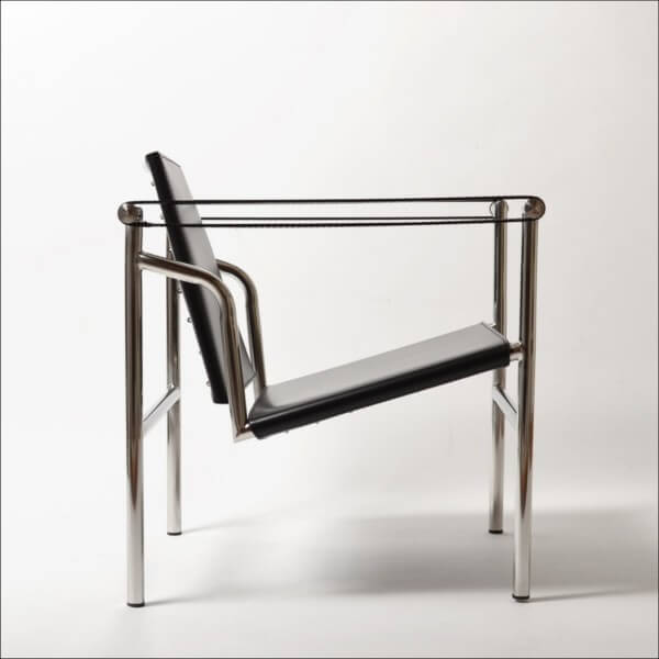 通常、1人掛けの椅子は背もたれが固定されており、椅子が人間の姿勢を規定しますが、この コルビジェ のLC1 スリングチェア は、背もたれが可動式になっています。