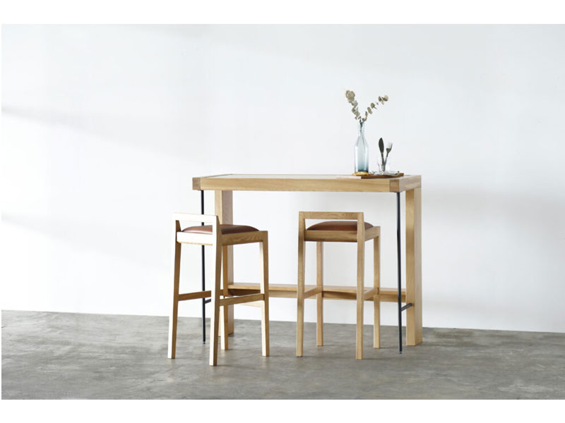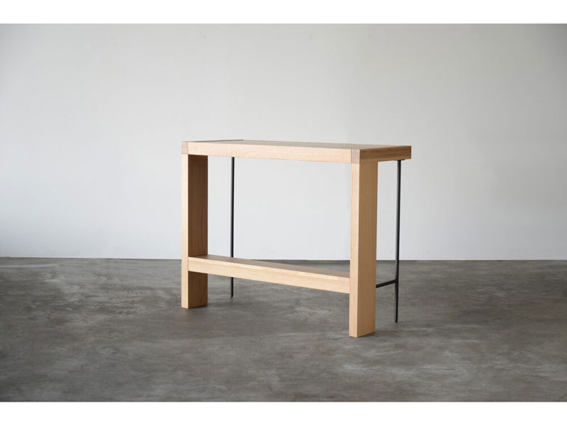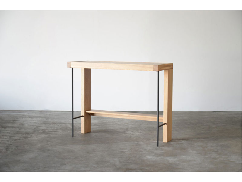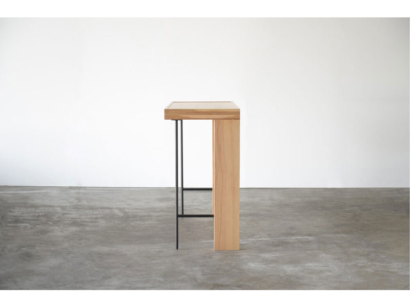 ボリュームのある木部と繊細なスチールで構成されたカウンターテーブル