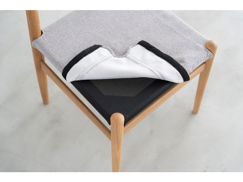 座面の張地は、やさしくナチュラルなカラーのファブリックと