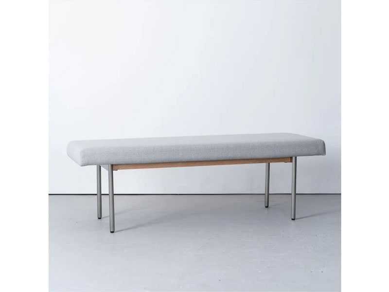 真っ直ぐに伸びた4本のステンレス脚・ 全体を包み込むようにカーブした木製のアーム・優しく湾曲したボリューム感のあるクッション素材感と質量感のバランスが シンプルでユニークなフォルムを生み出します。 背と座は、もっちりしたクッション性があり、 ゆったりとくつろげる掛け心地です。