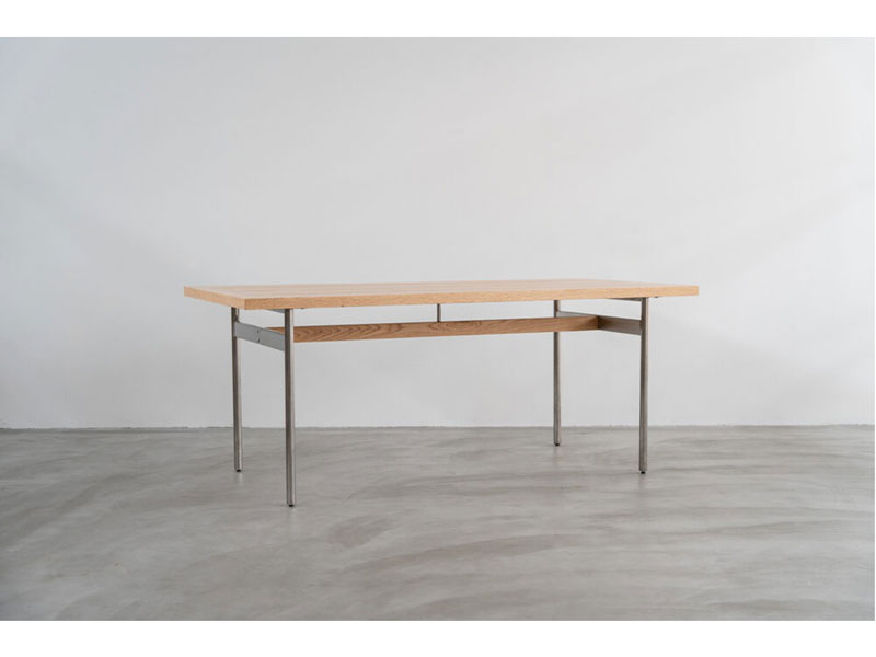 オーク材とステンレスが基調の、ゆったりと寛げるベンチスタイルのダイニングです。 天板や背板のエッヂは滑らかに加工され、テーブルの棚板はラタン張りにするなど、随所に拘りのディテールが詰め込まれています。
