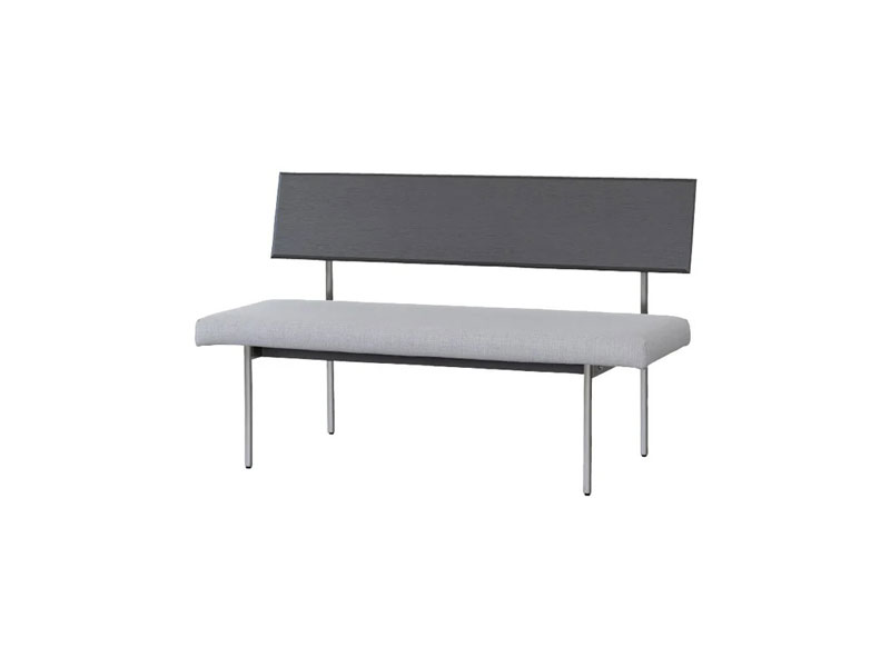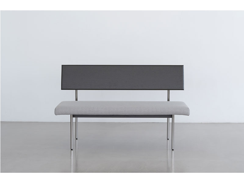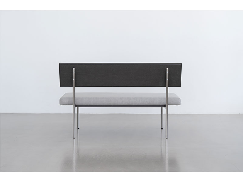 真っ直ぐに伸びた4本のステンレス脚・ 全体を包み込むようにカーブした木製のアーム・優しく湾曲したボリューム感のあるクッション素材感と質量感のバランスが シンプルでユニークなフォルムを生み出します。 背と座は、もっちりしたクッション性があり、 ゆったりとくつろげる掛け心地です。
