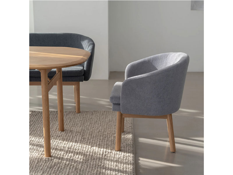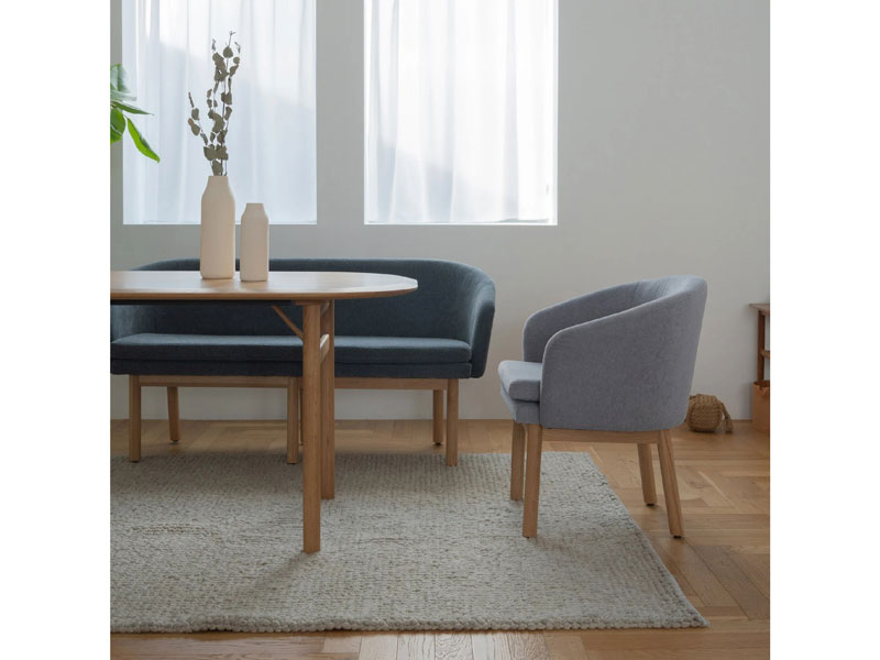 丸みのある優しいフォルムが特徴のダイニングチェア。座面は少し広く設定されており、食卓でゆっくりとくつろぐことができます。