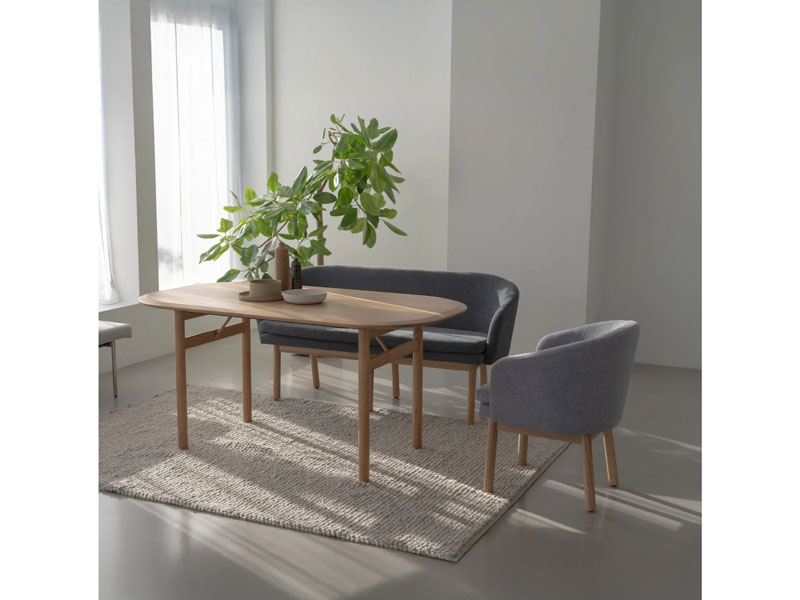 丸みのある優しいデザインが魅力の無垢ダイニングテーブル。質感を生かした滑らかな仕上げは北欧スタイルやナチュラルテイストの空間に心地よくなじみます。ほかの家具ともコーディネートしやすい万能な一台です。
