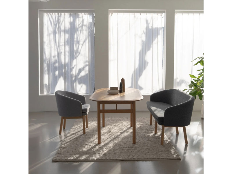 丸みのある優しいフォルムが特徴のダイニングチェア。座面は少し広く設定されており、食卓でゆっくりとくつろぐことができます。