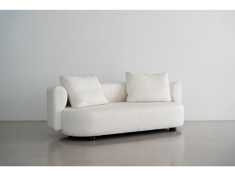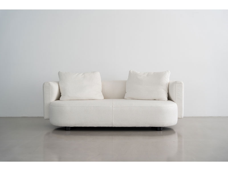 アシンメトリーで丸みのあるデザインが特徴のソファ。