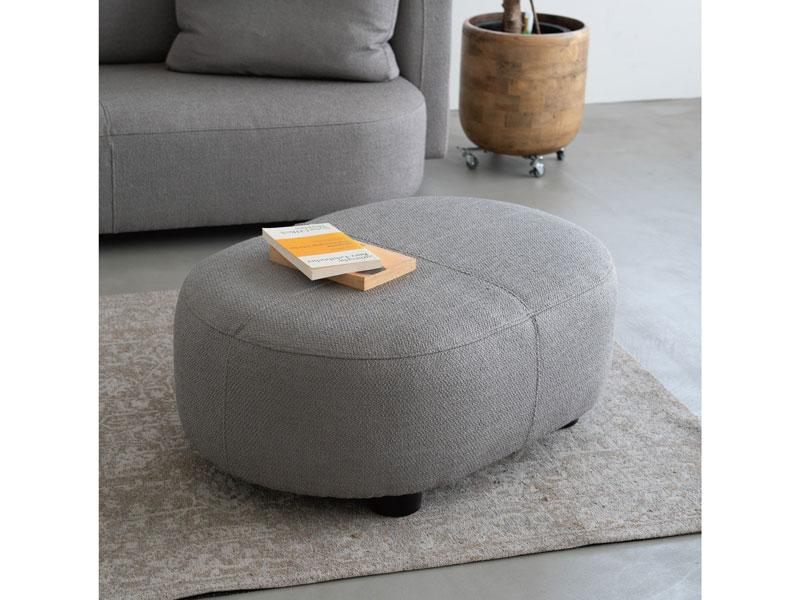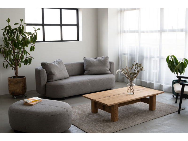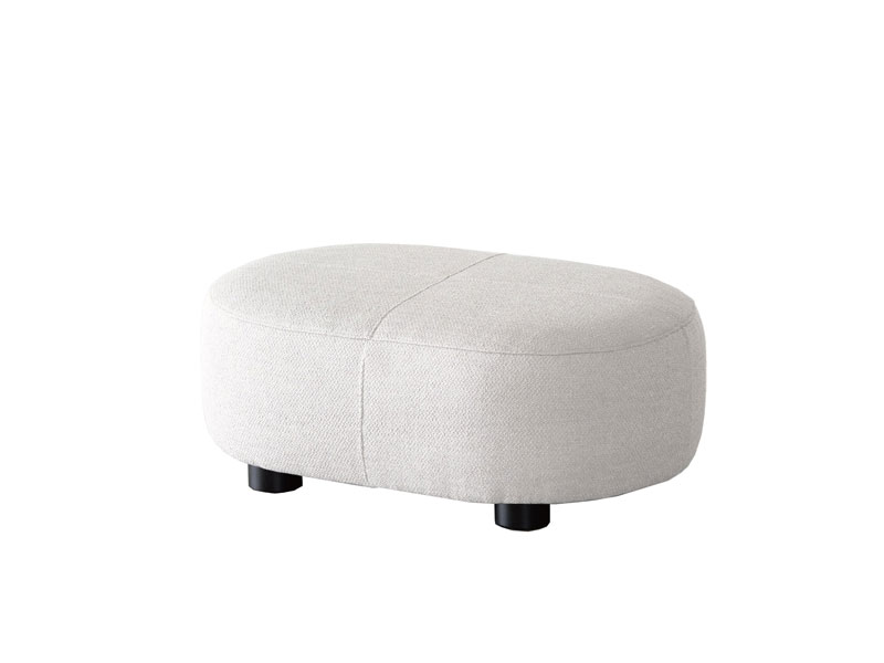 ラウンドしたフォルムが特徴のハーフアームソファ。丸みのある大きめのオットマンは、センターテーブルの代用や