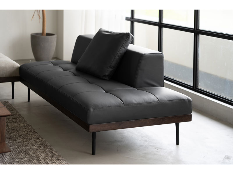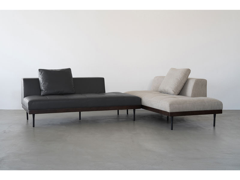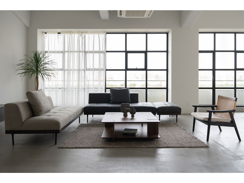 異素材の組み合わせが際立つモダンなデザインのソファ。
