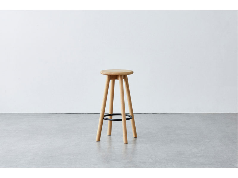 無垢材を使用した、丸みのある優しいフォルムのハイスツール。