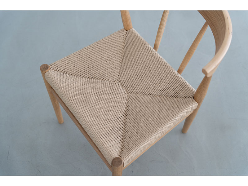 座面にペーパーコードを張り込んだハーフアームチェア。