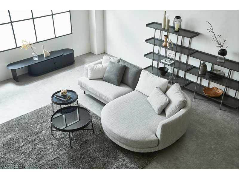 ラウンドした大型のジェーズロングが特徴のゆったりとくつろげるソファ。