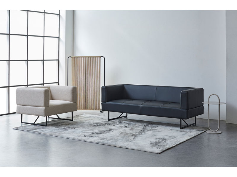 異素材の組み合わせが際立つモダンなデザインのソファ。