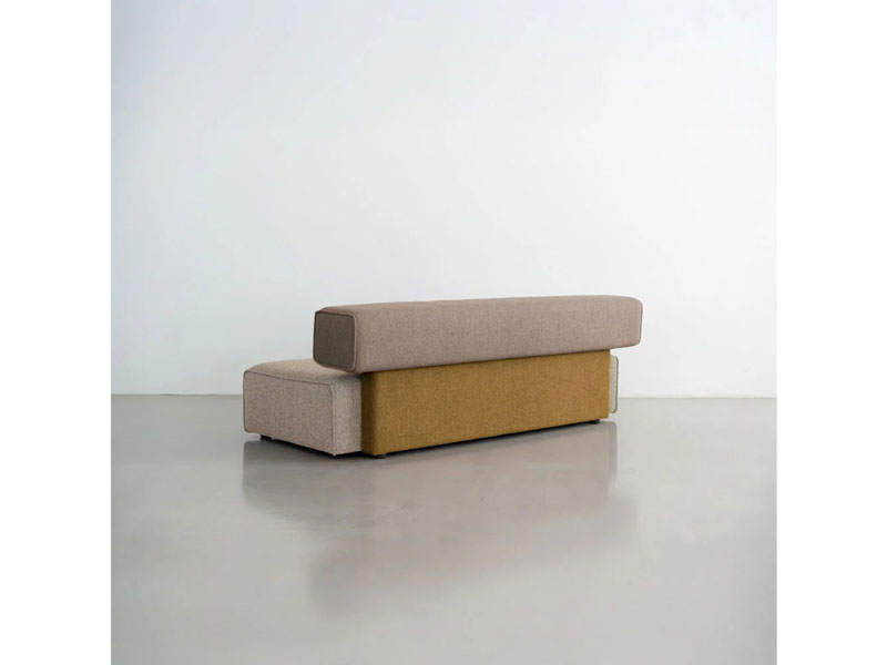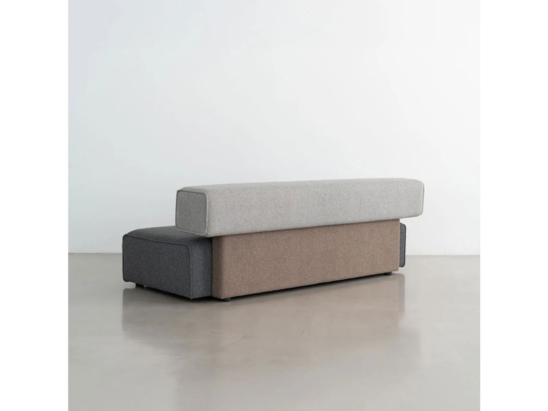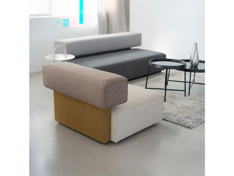 異なる色のボックスを組み合わせて構成されたシンプルなアームレスソファ。