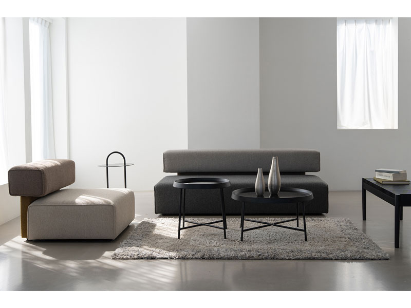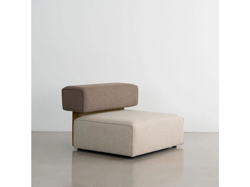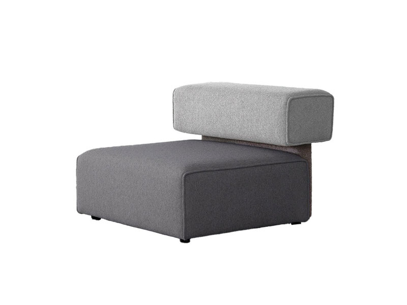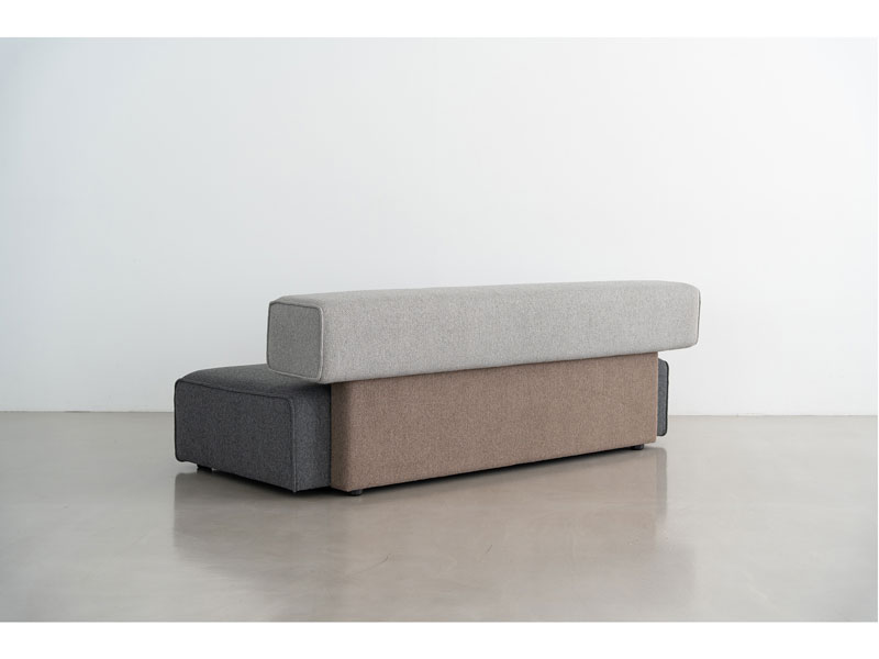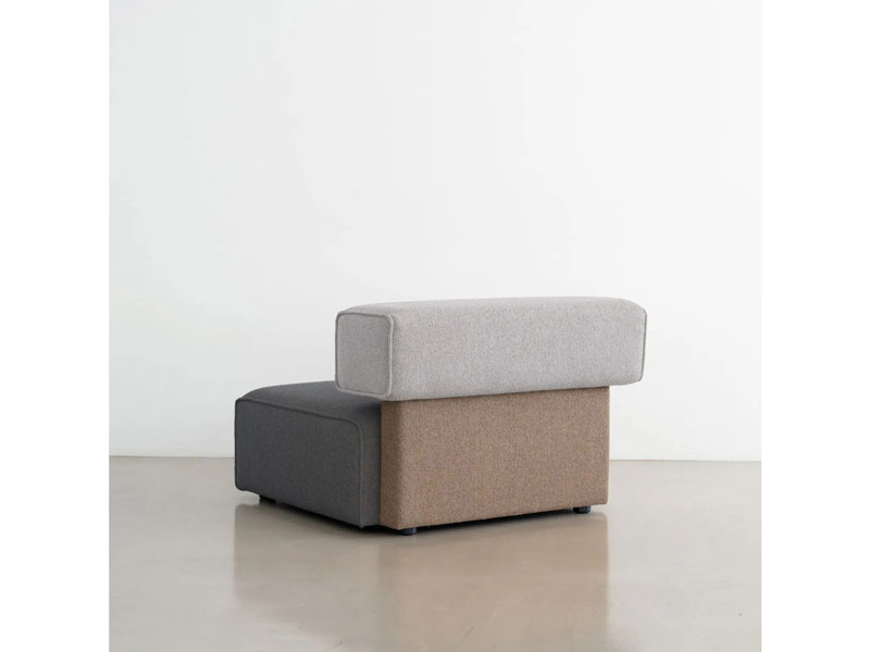 異なる色のボックスを組み合わせて構成されたシンプルなアームレスソファ。
