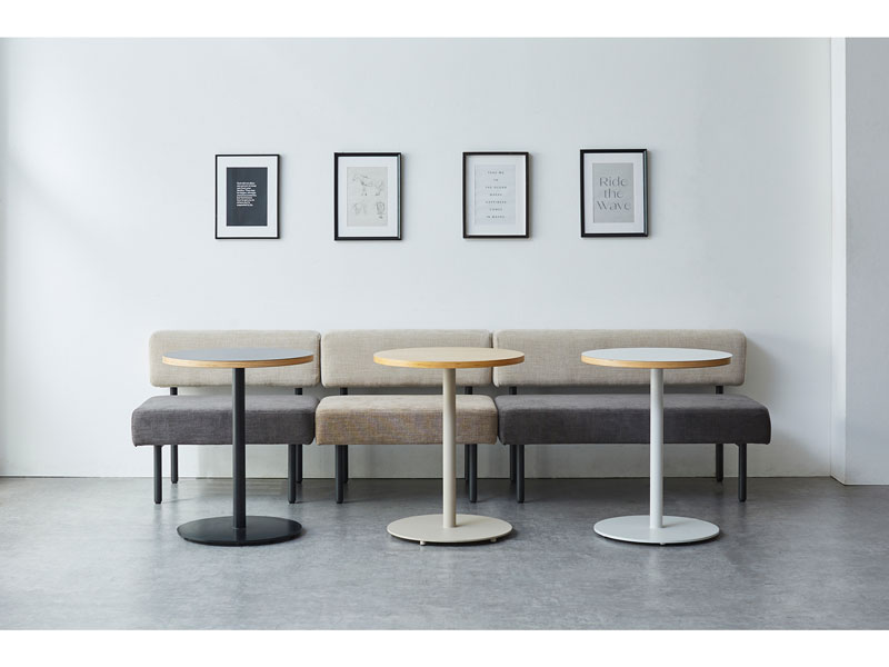 カフェやオフィスなどのレイアウトで活用しやすい背付きベンチ。