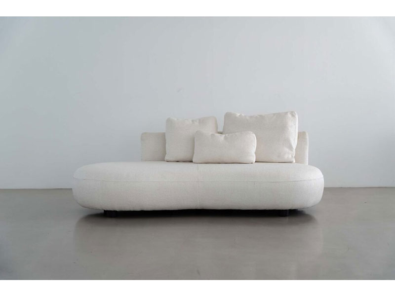アシンメトリーで丸みのあるデザインが特徴のソファ。