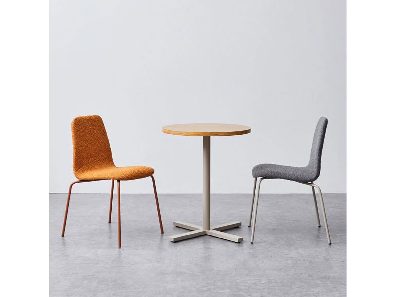シンプルなスチール脚のダイニングチェア。