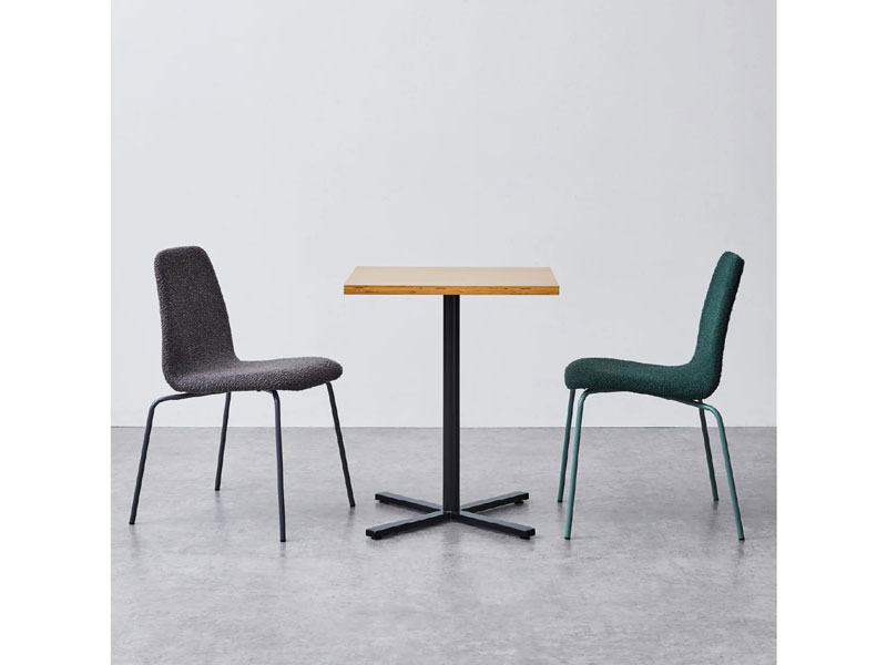 シンプルなスチール脚のダイニングチェア。